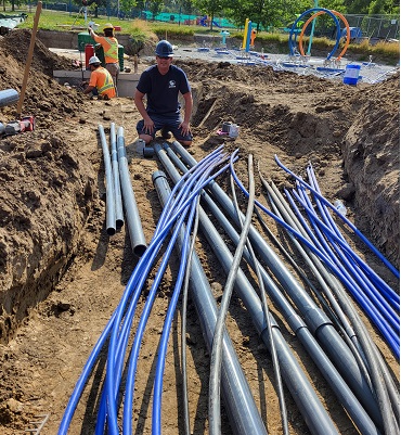Splash pads are classified as either a “drain away” or, “recirculation” system. A drain away system will use municipal or well water to supply the water features. This water goes directly to drain afterwards. A recirculation system will capture the water, filter it, and then reintroduce the treated water back to the features. A portion of fresh water is also introduced with this process.